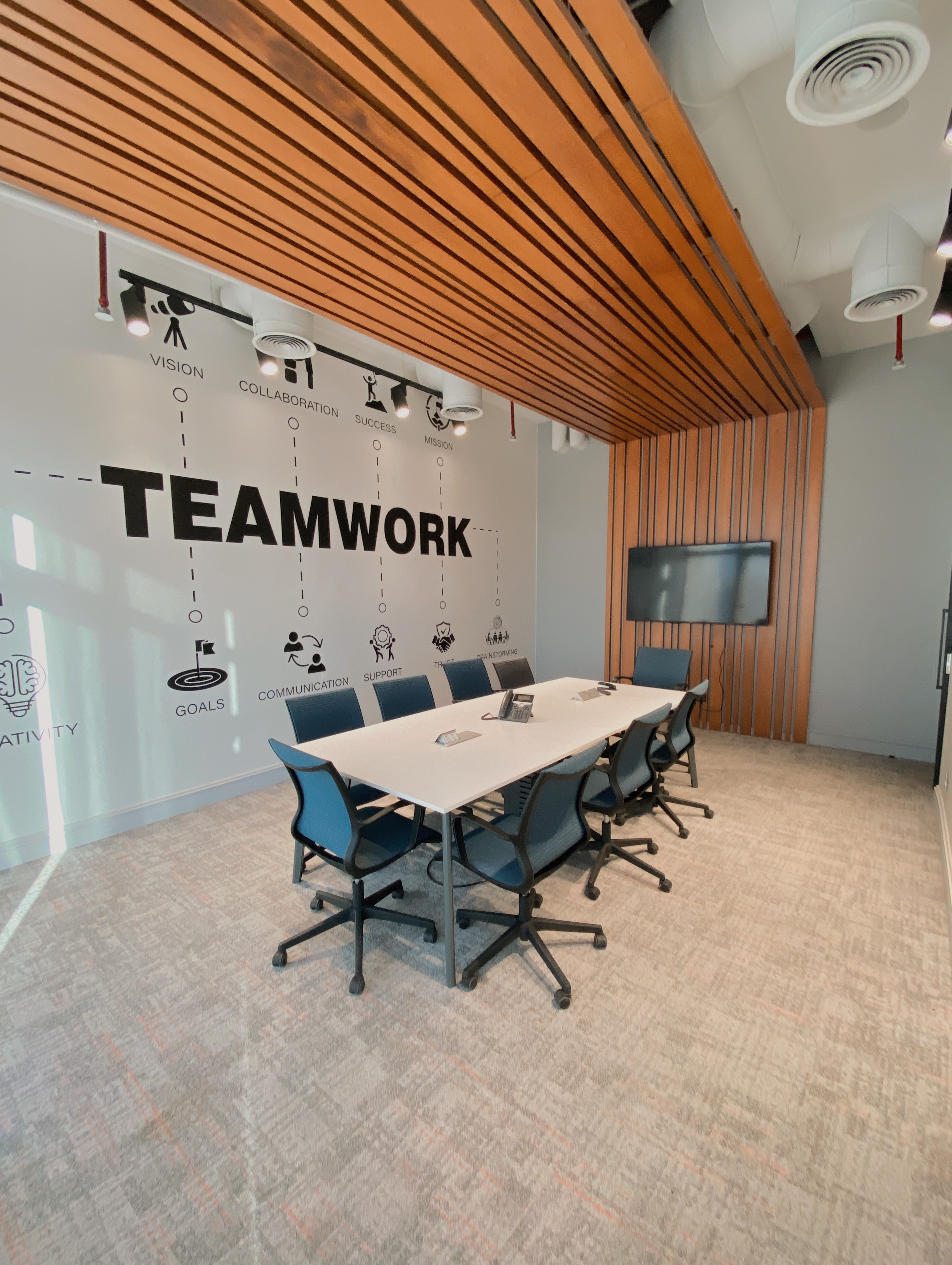 A sleek, flexible meeting space adaptable to whatever your needs are. Whether it’s a standard meeting, important business pitch , brainstorming, this is the perfect space for your meetings.